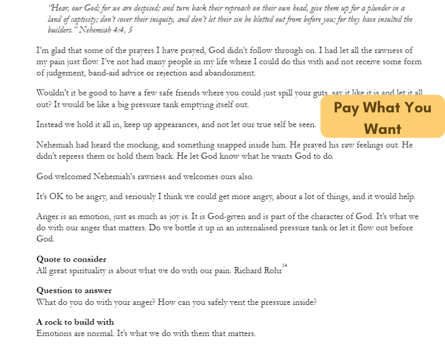 This little devotional reveals timeless truths about recovery taken from the story of Nehemiah as he rebuilds not just the wall of Jerusalem, but the heart of a city, a people, a person.